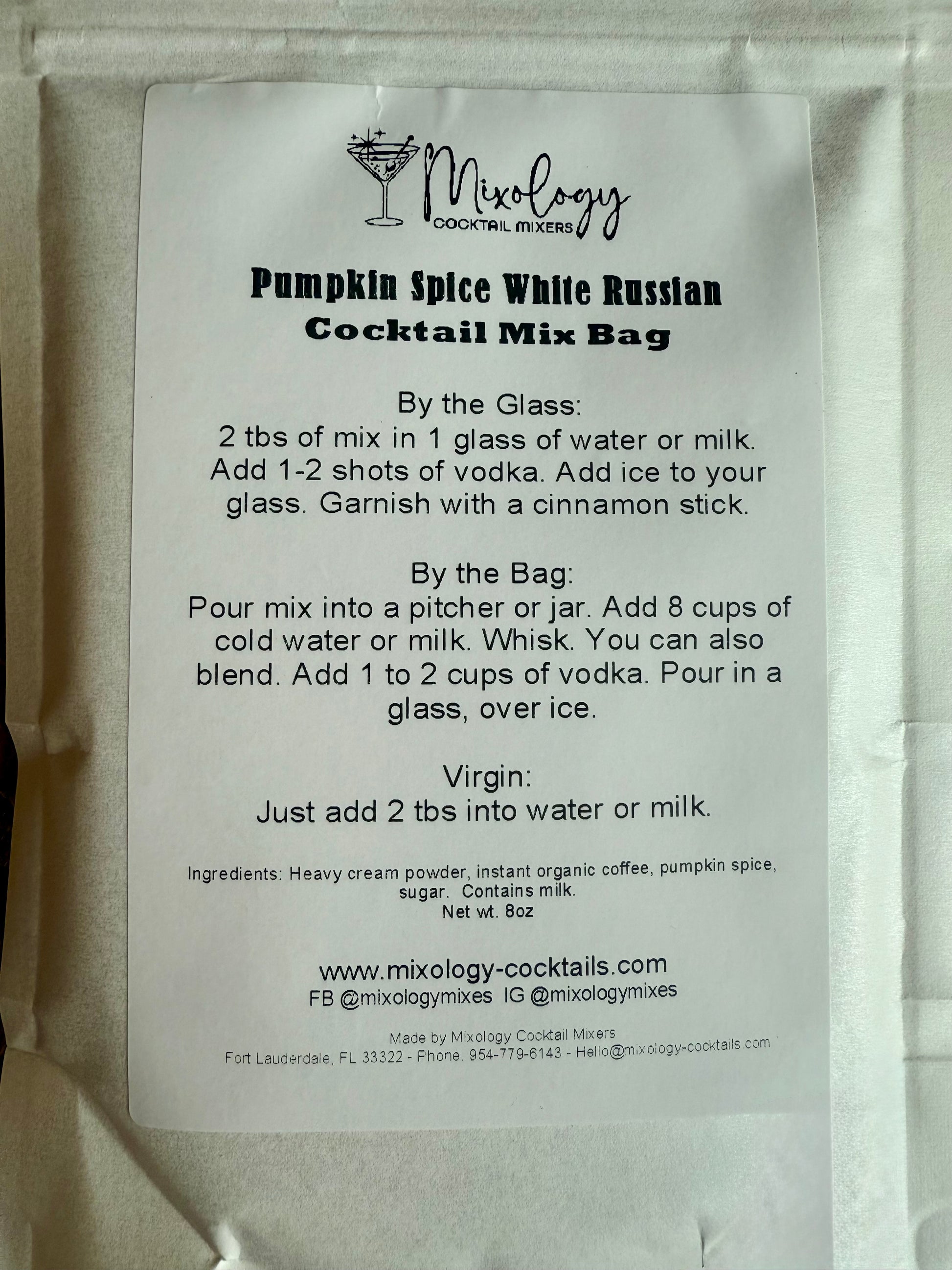 *Smooth, creamy goodness of White Russian with a twist of pumpkin pie spices (cinnamon, nutmeg and a hint of vanilla)