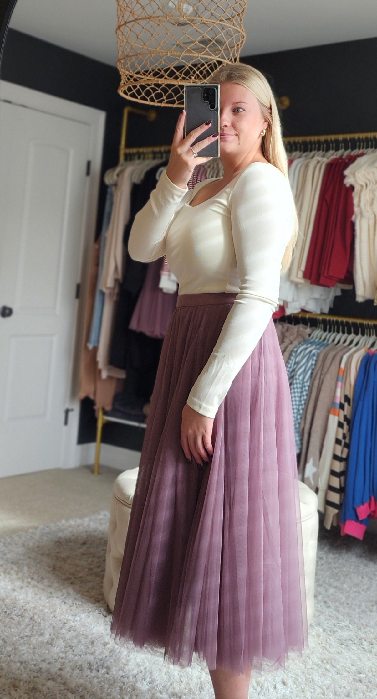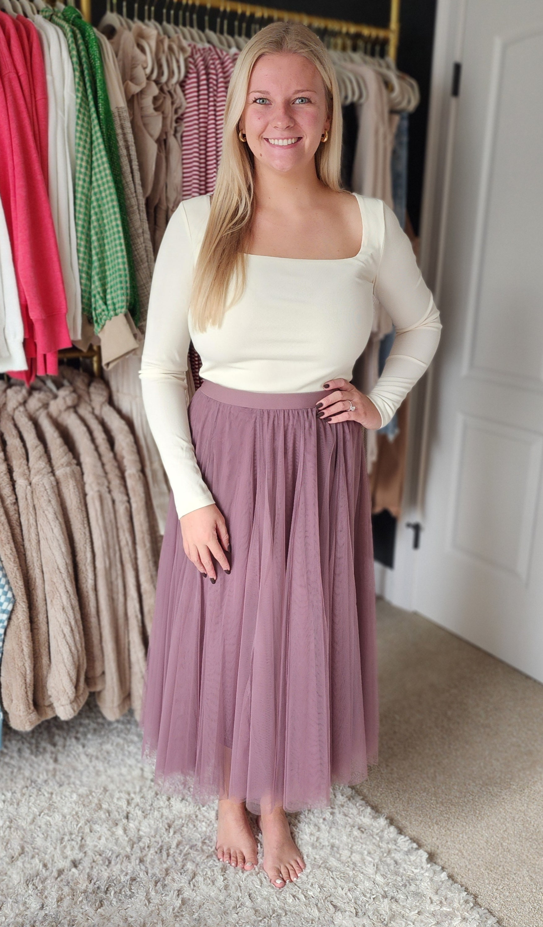 *Ribbed, Square Neck, Long Sleeve Top in Ivory